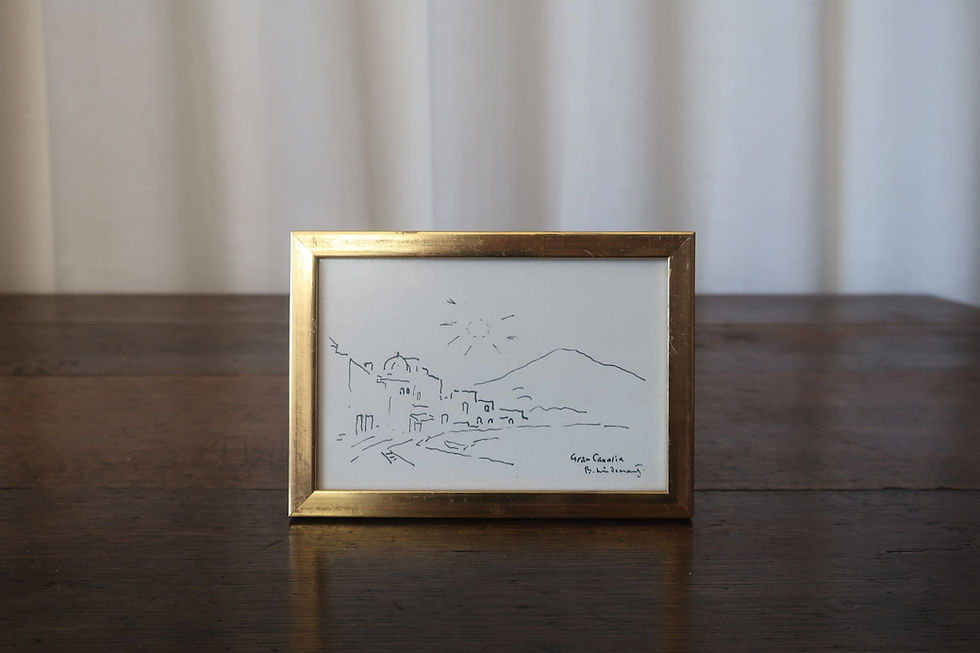 Framed Ink Drawing, Gran Canaria, By Bertil Lindecrantz (1920–1991)
