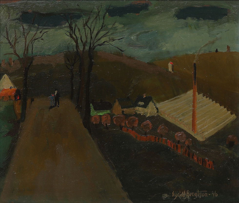 Framed Oil, Landscape with Houses & Figures, Sigfrid Bengtsson 1898-1985