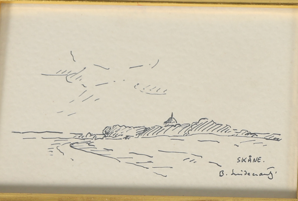 Framed Ink Drawing, Skane By Bertil Lindecrantz (1920–1991) Image dimension