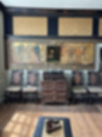 Flegg was one of the many who helped bring this building back to life. Jonathan Hunt, who had just graduated with a degree in photography, undertook much of the stonemasonry. He enjoyed it so much, that he decided to retrain. After seeing a play at Sevenoaks, Jonathan and Robert asked the costume designer Clare Southern to help with repairs to the frieze and some of the fittings such as the blinds.