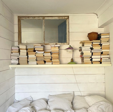When decorating, we like to use a variety of materials - you will see wood, steel, wool, linen etc. More recently, I have been adding more early tones to the interior. We have also created two interior glass doors with some building materials we've found, one of which has become the door to our bedroom, which gives us a lovely view into the sitting room.