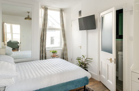 The flat features an open-plan living area with large windows framing glorious coastal views—perfect for watching the weather roll in (ideally with a drink in hand). There’s a wood burner for cosier days, and a good-sized bedroom that doesn’t feel like a cupboard. Just a short stroll to the beach and a brief wander from St Ives train station, which links directly to St Erth—handy whether you’re off to London Paddington or making your escape to Penzance.